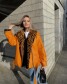 Яркая оранжевая косуха с контрастным воротом из плотной, износостойкой эко-кожи. Одна из самых практичных и незаменимых вещей в гардеробе.
